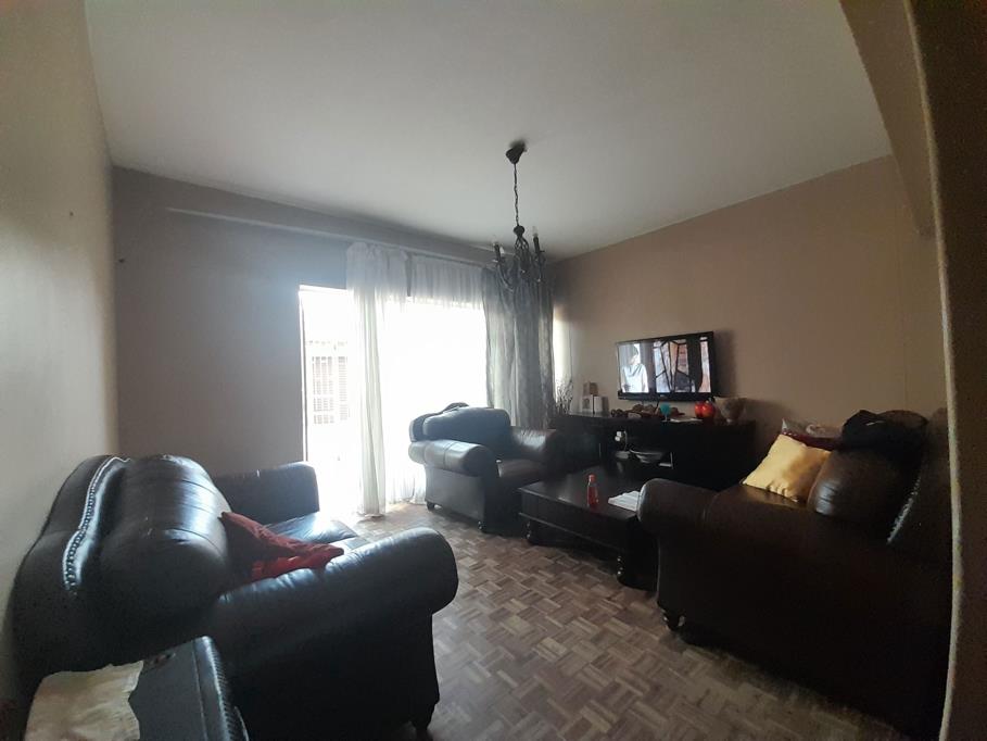 Lounge with parquet flooring and glass door leading to enclosed patio