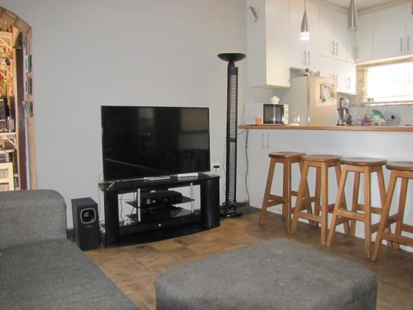 1 x Open plan kitchen, stove and built-in cupboards.