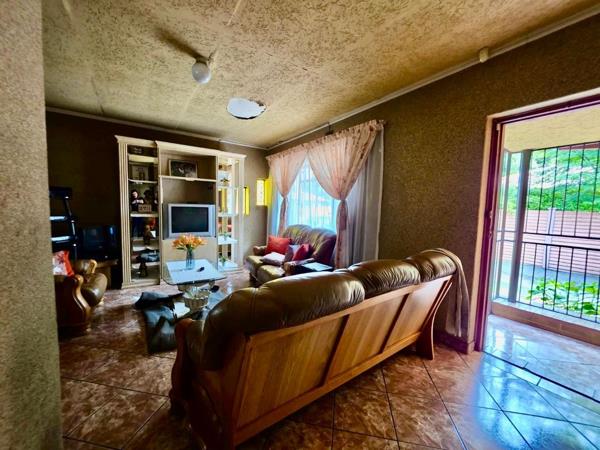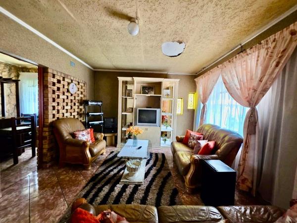 Located in the established suburban area of Vanderbijlpark CW 5, this property offers a convenient lifestyle in Vanderbijlpark, South Africa. This functional home features a spacious lounge, a dedicated dining room, and a separate family TV room, all with durable tiled flooring. The kitchen provides ample cabinet storage and natural light, presenting an excellent opportunity for a modern renovation. A unique rustic space with stone-clad walls and a wooden bar adds character, perfect for entertaining. The residence includes three comfortable bedrooms, each offering natural light. One bedroom benefits from a built-in wardrobe, providing practical storage. The single bathroom serves the household, awaiting personal touches to enhance its appeal. Set on a 570 sqm erf, the property boasts a textured, stone-like exterior and a paved entrance secured by a gate. A single garage and two additional parking spaces cater to vehicle needs. The outdoor area includes a small grassy yard and a partially shaded paved section, ideal for future landscaping or utility use. Domestic rooms are also available.