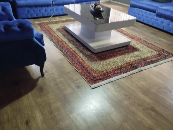 With tiles and wood flooring, this is an easy to clean home. Spacious lounge area and very neat bathroom.