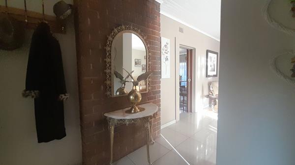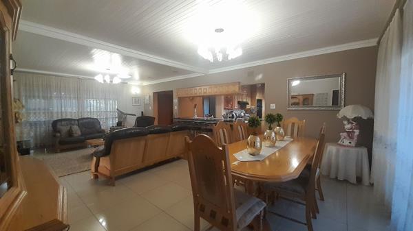 You are welcomed into this family home through a tiled entrance that leads to formal lounge . Open plan dining, Tv area and a stunning beautiful oak kitchen, plenty of cupboard space, breakfast nook, gas stove and scullery. Study with build in cupboards and own entrance for your convenience. Covered patio with indoor braai that opens to a lapa and sparkling pool that overlooks a beautiful well kept private garden. 4 spacious bedrooms all looking out over the pool with built in double cupboards and fans. The main bedroom has an en suite plenty of cupboard space and fans and airconditioning unit.