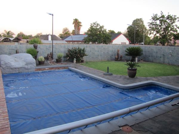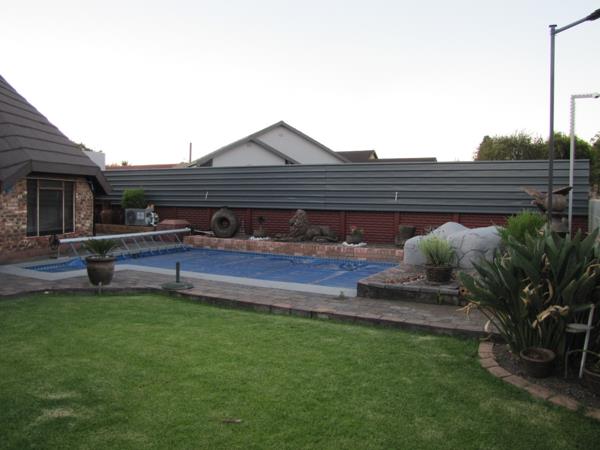 The property also has solar heating for the house, ceiling insulation, a heated swimming pool, a bore hole which feeds the house and garden sprinklers, a 2 200 litre Jo-Jo water tank with a pressure pump, separate braai area, outside store room, carport for three vehicles and a double garage.