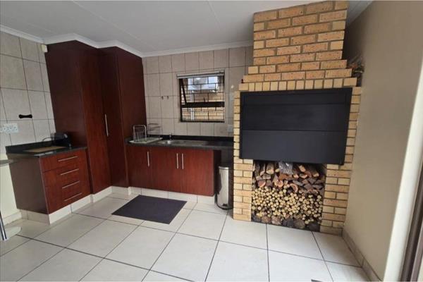 The exterior of the property is equally impressive. A beautifully landscaped garden with an irrigation system and indoor entertainment area, complete with build in braai, complements the sparkling swimming poolperfect for outdoor entertainment. The two-car garage comes with an automatic door, offering ample storage and security.