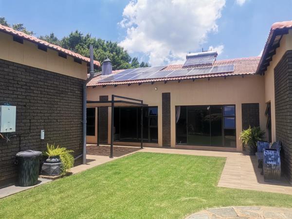Embrace sustainable living with 20 solar panels powering the property, complemented by a gas geyser for efficient water heating. Enjoy leisurely days by the swimming pool or relax by the tranquil fish pond. A borehole system and a 1000-litre JoJo tank with a pressure pump ensure a reliable water supply.
