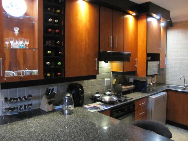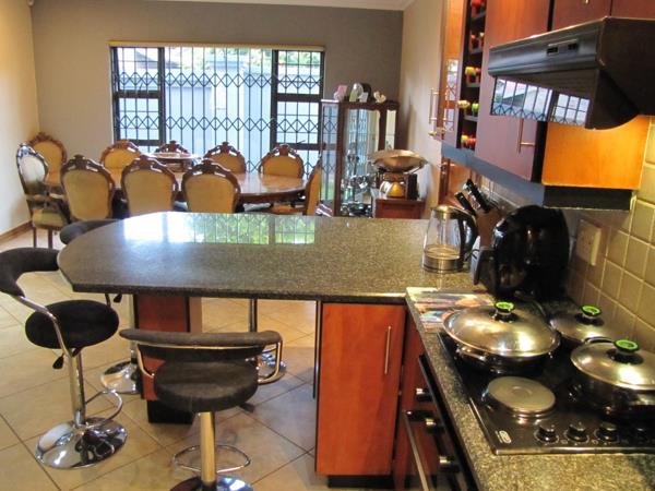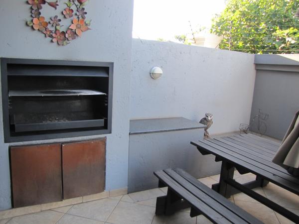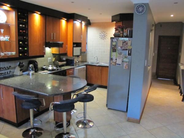 The townhouse offers a comfortable living experience and boasts an open plan kitchen with ample built-in cupboards, stove (hob) and a two seater breakfast nook.