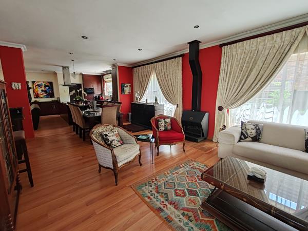 Step into this exquisite 4-bedroom home and be blown away by the seamless blend of modern style and comfort. The heart of the home features a sleek, well-appointed kitchen with abundant cupboard space, a scullery, gas stove, and electric oven perfect for preparing meals while enjoying the open plan space. Relax in the spacious TV room, dining area, and living room, all flowing together with warm, inviting energy enhanced by electric and gas fireplaces. Air-conditioning in the kitchen adds an extra touch of convenience.