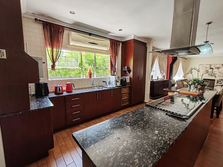 This property offers a cozy study room, ideal for working from home or quiet reading, with views of the lush green garden and sparkling swimming pool. Step outside to discover a beautifully revamped Lapa with built-in cupboards and an outdoor gas braai, perfect for entertaining guests. The big, green garden features a charming boma space for winter or summer nights with loved ones.