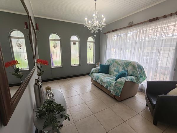 Inside, the home welcomes you with a cozy sitting room, a dedicated TV room, and a dining room thats ideal for family meals. The well-designed kitchen is a highlight, complemented by a convenient laundry area. Each bedroom is generously sized, with one offering an ensuite bathroom. A separate main bathroom is also available, and burglar bars provide added security for peace of mind.
