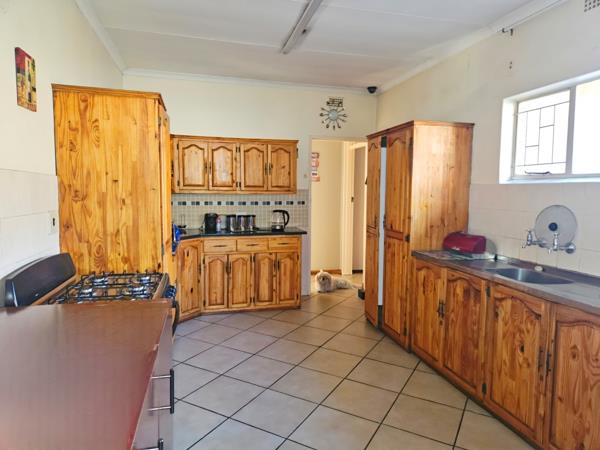 3 Spacious Bedrooms, 3 Bathrooms (including full en-suite in the main bedroom), Open-plan lounge and dining room with fireplace, Kitchen with solid pine cabinetry, gas stove, and separate scullery/laundry.