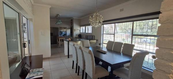 This stunning 5-bedroom, 2-bathroom home is perfect for families seeking comfort, style, and ample space and is located within walking distance of the shopping Centre and schools. The open plan kitchen and scullery are perfect for those who love to entertain, with plenty of space for cooking and preparation. The 3 living spaces are open plan, creating a sense of flow and spaciousness throughout the home. The laundry is also conveniently located nearby. There is a double garage and double carport, providing ample parking for all your vehicles. Relax and unwind on the patio overlooking the beautiful garden, which is perfect for outdoor entertaining and enjoying the sunshine. Prepaid meter, 5000lt JoJo water tank, irrigation system, borehole, gas geyser and additional electric geyser supplying the kitchen area. The property also features a Wendy house, which is perfect for storing garden tools or using as a workshop.