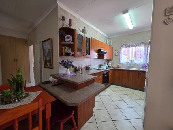 Discover comfortable living in this charming 2-bedroom, 1.5-bathroom home, ideally situated within a sought-after security estate and retirement village in Vanderbijlpark SE 2. The residence boasts an inviting open-plan layout, seamlessly connecting the lounge and dining areas, both featuring durable tiled flooring and ample natural light from large windows. The functional L-shaped kitchen is well-appointed with wooden cabinetry, a tiled backsplash, and a convenient breakfast bar, offering practical space for meal preparation and casual dining.