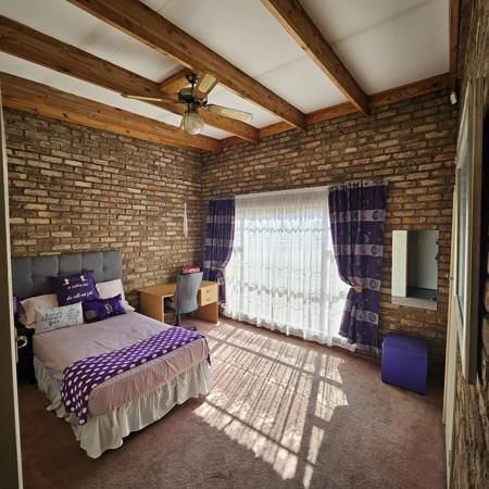 A breathtaking estate welcoming you with 4 big and spacious bedrooms, 2 bathrooms, 2 garages, knotty pine ceilings, main en suite and so much more. The property has prepaid electricity, a borehole, alarms, beams,CCTV and spacious parking space in the front drive. The surrounding area is very safe, and close to primary and High Schools.