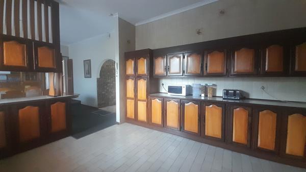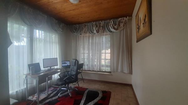 Large 4 bedroom home with borehole in SE 3. To appreciate this property it must be viewed. Endless possibilities. When entering the tiled entrance, their are two studies. Lovely living area overlooking the sparking pool. Open plan dining , stunning wooden spacious kitchen which opens to thatched enclosed lapa which can be converted into a TV Room with room that could be a bedroom or play room with en suite. This living area has wooden doors which lead to the entertainment area with cupboard space and built in bar, wooden sliding door which opens to patio with adjustable awning and indoor braai.