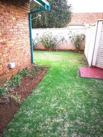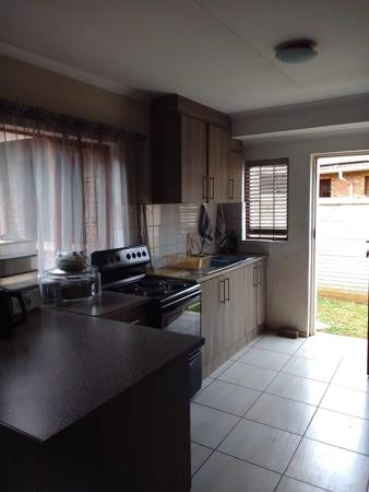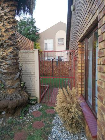 This town house is in a secure complex. The place consist of 3 bedrooms with build in cupboards, 2 bathrooms, one is in the main bedroom. Living area for launch and dining. Kitchen with place for your washing machine. One garage and a garden. Come and look at this place and put your stamp on it.