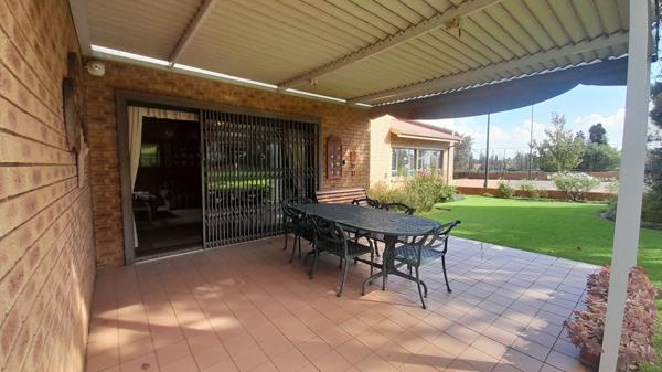 Elegant Modern 5 bedroom Family Home in SE 3. This luxury home is on a double stand and is north facing so all the rooms are sunny and natural light and get the sun. This dream home has everything to offer for a family that enjoys the indoors and outdoors living , to make beautiful memories. When entering, you are welcomed into a home that speaks elegance and comfort. Spacious lounge and TV/Living Area. Stunning oak kitchen with granite tops, breakfast nook, gas stove and scullery. For the entertainer, a oak bar and built in braai with sliding doors to a under covered louvre awning patio that overlooks a landscaped beautiful garden.