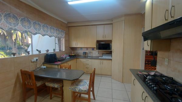 - Stunning kitchen with a breakfast nook, gas stove, eye level oven, separate laundry and scullery, plenty of cupboards and a beautiful view over the pool and garden