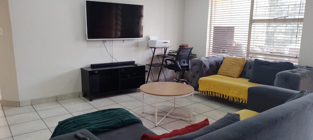Superb 101 sqm upstairs unit comprises of two spacious bedrooms, a full bathroom with bathtub and separate shower. Open plan kitchen with granite tops, oak cupboards, under counter oven, all leading to living area. The living area opens onto a balcony with a built-in braai. Other features include a lock-up garage, excellent security and the best location in the area. The address says it all! Close to schools, shops and freeways.