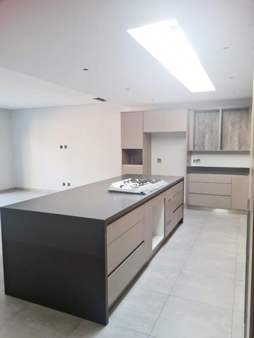 Spacious, modern kitchen with gas stove & built-in braai and open plan lounge and patio
