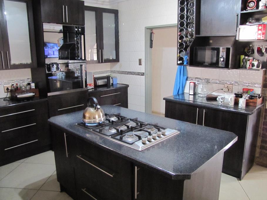 1 x Open plan kitchen with a centre island - table top gas stove, ample built-in cupboards and a separate scullery/laundry room.
