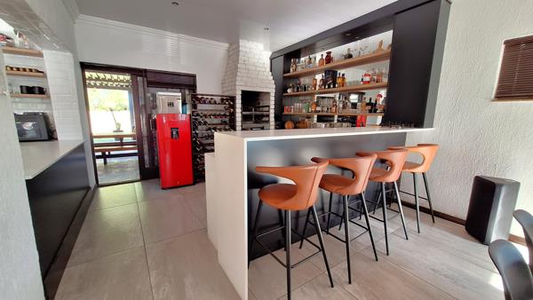 The open-plan lounge, dining room, and kitchen have been modernised and include a built-in bar, creating a perfect space for family living and entertaining. A covered patio extends the entertainment area and overlooks a low-maintenance garden.