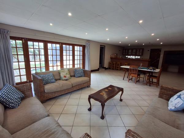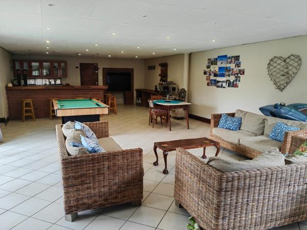 Nestled in the suburban area of Vanderbijlpark SW 1, this property offers a convenient lifestyle. Step inside to discover an inviting open-plan layout designed for comfortable living and entertaining. The spacious lounge features a unique stone-clad fireplace, creating a focal point, while the adjacent dining area boasts large sliding glass doors that open to the outdoors, ensuring ample natural light. The functional kitchen is equipped with wood-toned cabinetry and black granite-style countertops. This home also features a dedicated family TV room and a separate entertainment room, complete with a bar area and space for a pool table, perfect for gatherings and versatile family use.