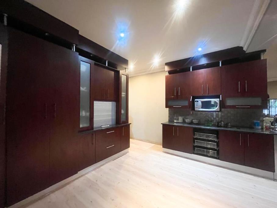 A fully equipped kitchen features solid countertops, ample storage space, and a scullery for convenience