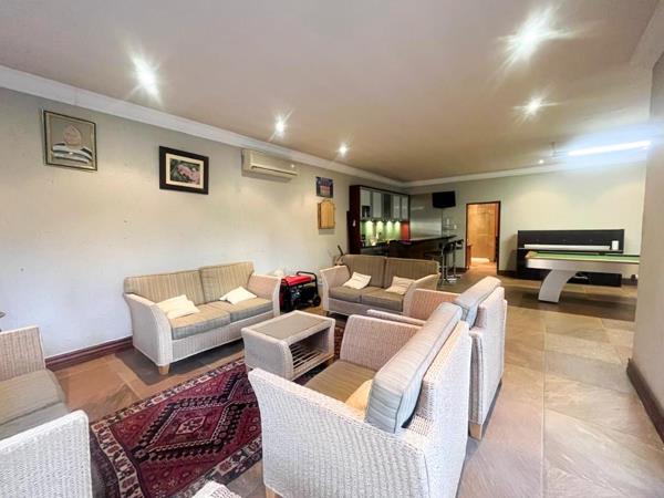 A highlight of the property is the large entertainment area, which includes a built-in bar and its own bathroom for convenience. Outside, a mini golf course offers a touch of recreation, while the sparkling swimming pool provides a perfect place to relax.