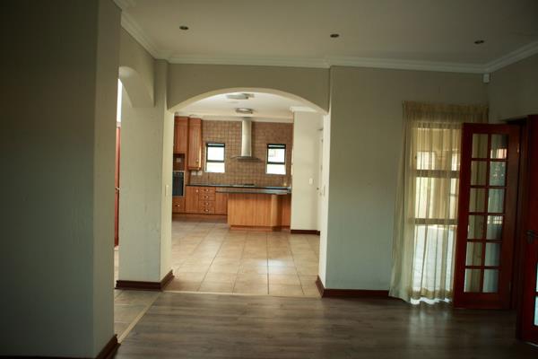 When entering through the wooden doors you are welcomed into a entrance that leads to lounge with fireplace in the center, and open plan dining and stunning kitchen with breakfast nook and scullery . A study for your convenience A covered patio with a indoor braai, with sliding doors that opens to sparkling pool. Upstairs 4 bedrooms, 3 balconies and also boasts with 3 and a half bathrooms.