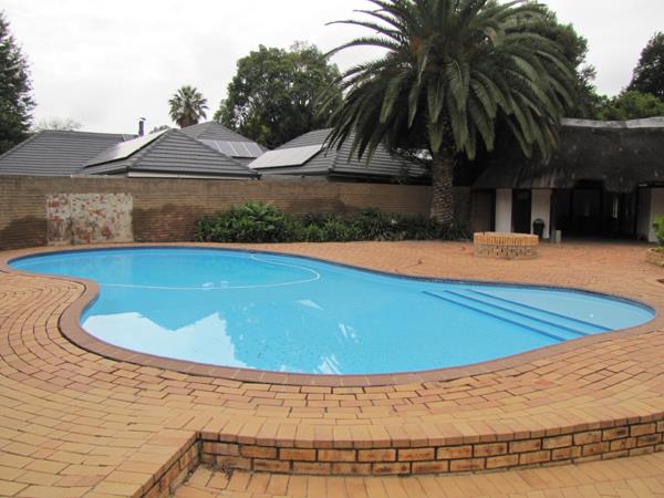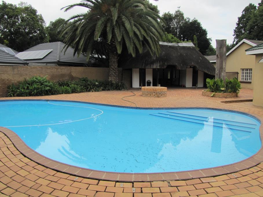 The property also offers an out building that has two bedrooms and a central bathroom, staff quarters, a swimming pool heating system, a sauna (disconnected), change room, air conditioner, borehole, 2 x 5 000 litre water tanks with a filtration system, store room, garden sprinklers, outside lighting, burglar bars, two automated garages and two single carports.