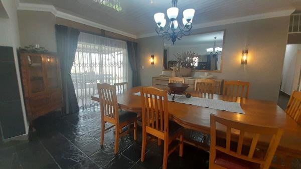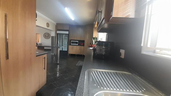 Lovely 4 bedroom family home in Sw 5. This property is ideal for a large family and has an immaculate garden. When entering into the entrance hall, you are welcomed into the lounge area which has a fireplace and airconditioning unit. Open plan dinning and Melamine kitchen with gas stove, breakfast nook which opens to under covered patio, panty, scullery and laundry room. 4 spacious bedrooms. The first bedroom can be used as a flatlet with its own bathroom, entrance and patio. The main bedroom has an en suite with walk in closet and a sliding door that opens to the beautiful garden.