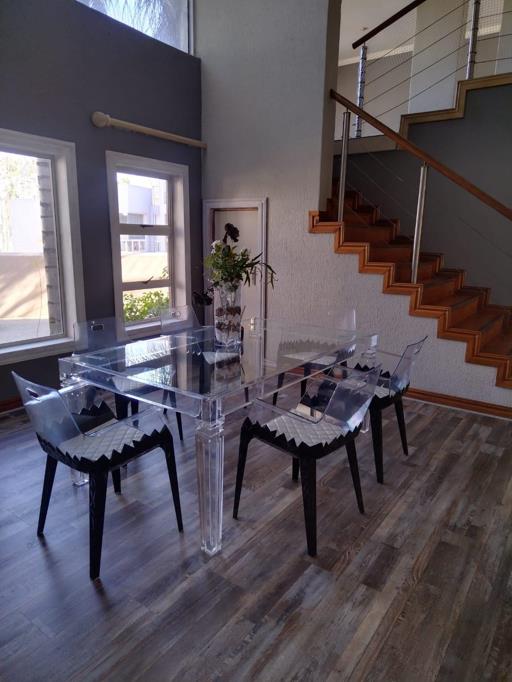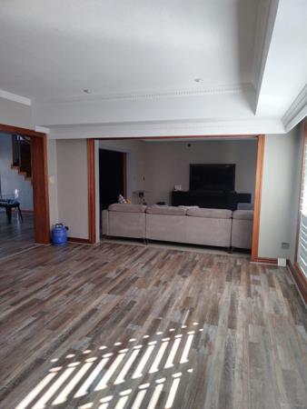 Double story house in a in closed street. When you enter this house it stays hello to you. The house is like two houses, for a very big family. On the ground floor there is a beautiful big kitchen with lot of cupboards, breakfast nook, scullery and a pantry. The laundry is separate, enough place for all your washing equipment''s. 3 Living areas - dining room, family room with a bar and a big lounge. Out of the lounge you enter a room - there is a Jacuzzi, sauna room and a toilet. Out side is a build in braai and a small swimming pool. There is a guest toilet and a guest room with it own bathroom. Up stairs there is 4 bedrooms, main bedroom en-suite and another full bathroom. All the rooms have build in cupboards and lead with sliding doors to the patio.There is also 2 living areas and a cinema.