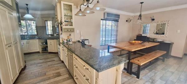 This stylish face-brick home offers spacious, versatile living with two reception rooms, a cozy lounge with fireplace, TV room, study, family room, and a dining area flowing into an open-plan kitchen featuring an eye-level oven, gas hob, extractor, and loads of cupboard space.