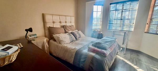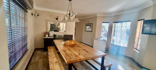 The beautifully maintained garden includes a sparkling pool, open braai area, patio, and balcony with skyline views perfect for entertaining and relaxing.