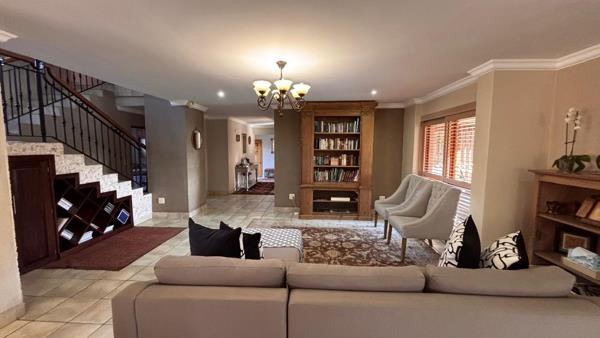 On the main level, there is a versatile room that can serve as a study or a 5th bedroom, along with a well-appointed guest bathroom for visitors. The living room opens out to a charming patio, perfect for outdoor entertaining or relaxing by the heated swimming pool.
