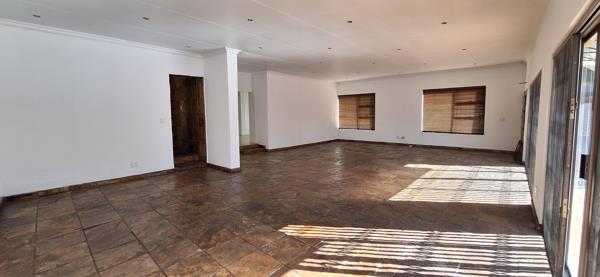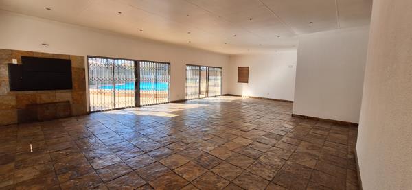 Expansive open-plan living, dining, and entertainment area with built-in braai