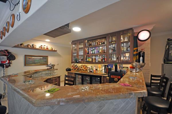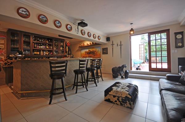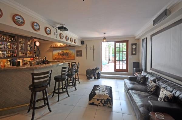 A fitted bar complete with cinema projector screen and surround sound, privately located to ensure easy entertaining and privacy.