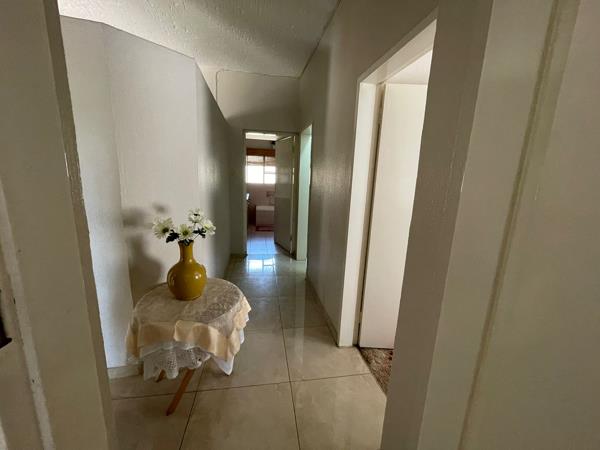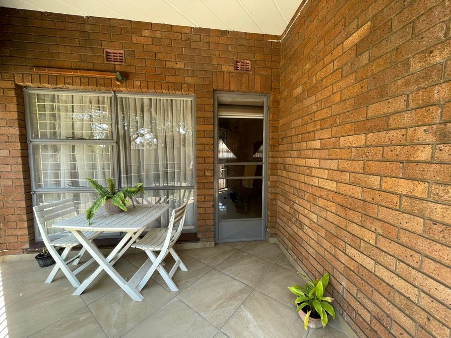 This neat and cozy ground floor apartment is located in a well maintained complex.The apartment features two spacious bedrooms with built-in cupboards,one full bathroom.The open plan layout seamlessly connects the lounge, dining room and kitchen with enough wooden cupboards and electric stove creating an Ideal living and entertainment space.Additional amenities include two lock-up garages and access to communal pool with a well maintained garden.