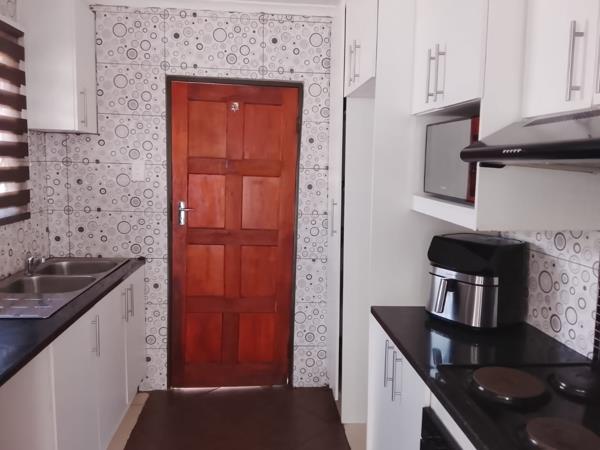 This neat and well-maintained home offers a perfect blend of comfort and practicality. The property features fully tiled floors throughout, ensuring easy maintenance and a clean, modern feel. The spacious open-plan kitchen is equipped with built-in cupboards, a double hand basin and stove HOB, making it both functional and convenient.
