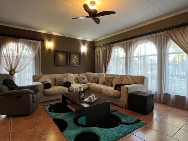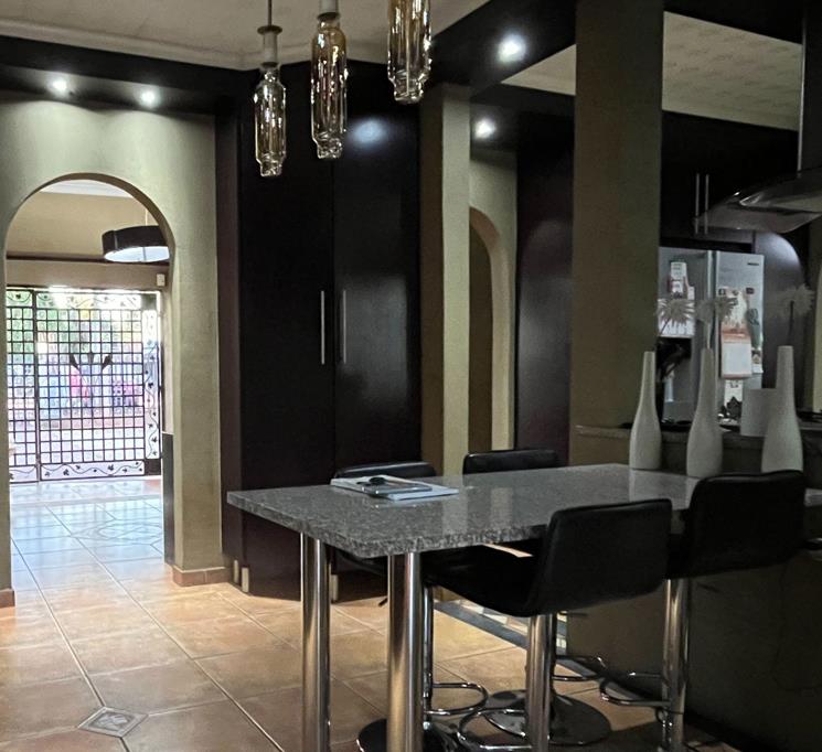 Elegant Home In Arcon Park. Welcome to this stunning three-bedroom, three-bathroom home, perfect for modern family living. The property boasts a sleek, contemporary kitchen equipped with high-end appliances and ample storage. Entertain guests with ease using the built-in braai in the covered courtyard, or relax by the sparkling pool. The charming wendy-house provides additional storage or a cozy retreat with its own bathroom.