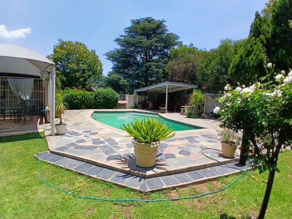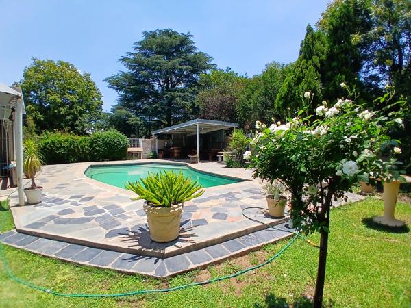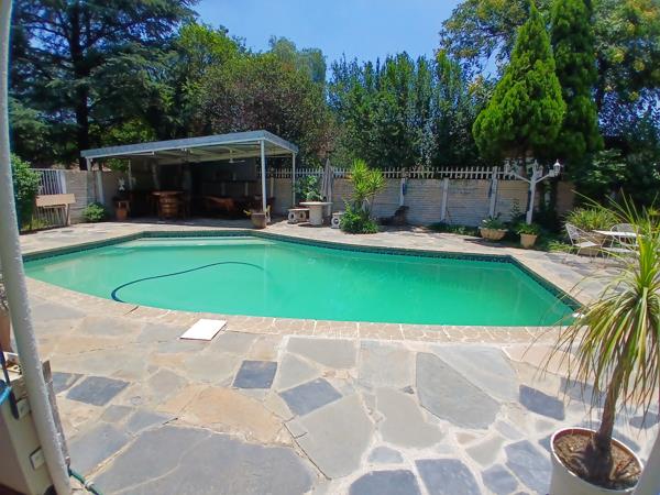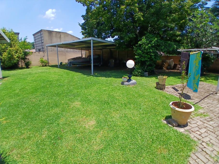 This property offers 3 bedrooms, 2 bathrooms, 2 garages, 5 carports and a caravan space. The back yard has an access gate from the front to the back. It offers a pool and a lapa, ample parking for your guests. A servants room and an outside toilet next to the laundry. The garage has a carport for 2 cars attached to it.