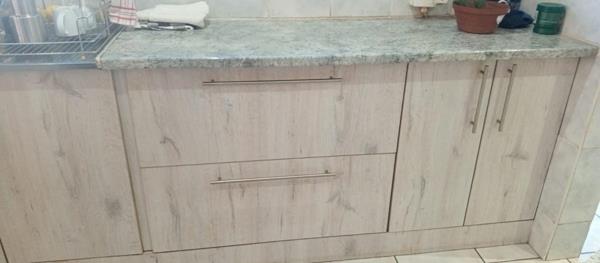 In the kitchen, you have lots of cupboards with an extractor fan, a stove, and an oven.