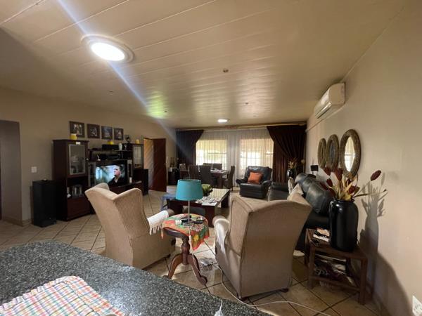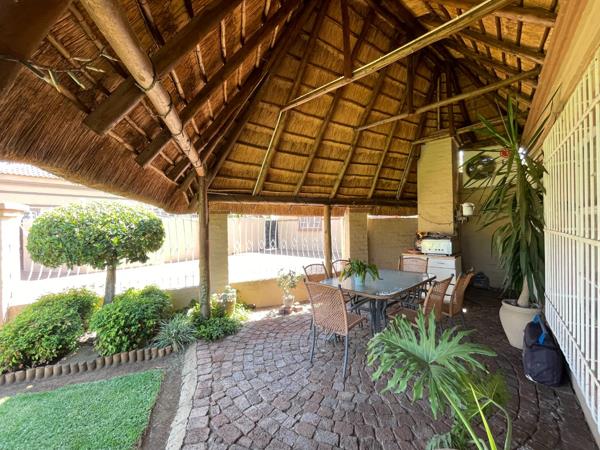Step outside to a thatched lapa, ideal for relaxing or hosting guests, all overlooking a lush, well-kept garden. Completing the property is a double garage, providing secure parking and extra convenience.