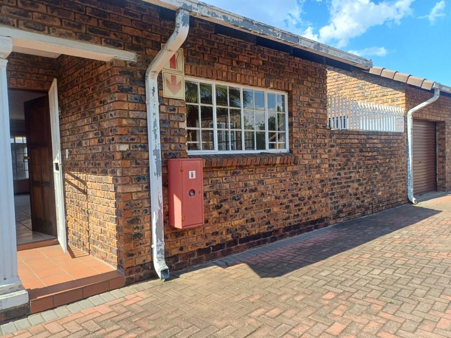 This robust 2-bedroom, 2-bathroom unit offers a practical living solution within a complex setting in Arcon Park, Vereeniging. The property presents a sturdy brick exterior with a classic tiled roof, complemented by neatly paved pathways and landscaped garden beds that enhance its curb appeal. An integrated single garage provides secure parking, alongside additional parking space, ensuring convenience for residents. The property benefits from an access gate and electric fencing, contributing to a secure environment.