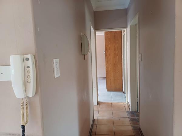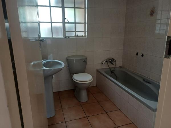 The home comprises two comfortable bedrooms, one featuring a built-in wardrobe, and two bathrooms. The main bathroom includes a bathtub, while the second bathroom, an en-suite, provides an enclosed shower. Both bathrooms are fully tiled. Additional features include burglar bars for security and a built-in braai, perfect for outdoor entertaining on the paved areas. This property offers a solid foundation for a family seeking to create their ideal living space.