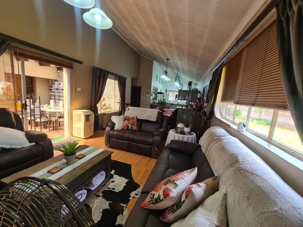 Security is a top priority in this home, featuring electric fencing, an alarm system, and CCTV surveillance for your peace of mind. With a solar geyser installed, you can enjoy energy efficiency and lower utility bills.