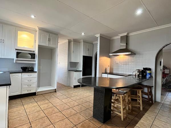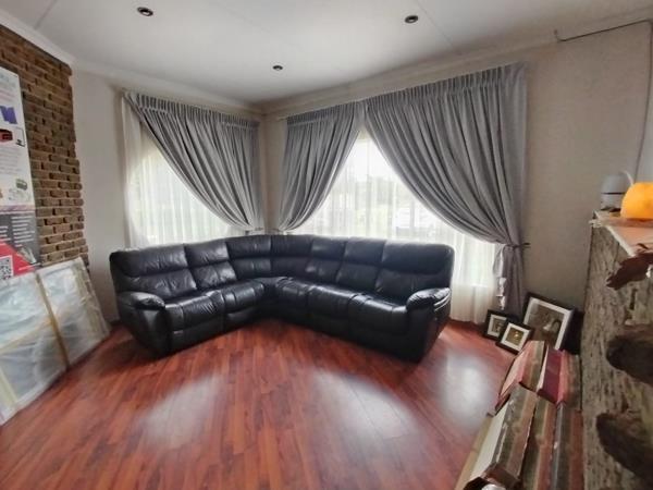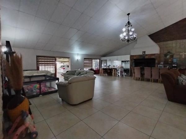 Step into a stunning open-plan living area that seamlessly combines the lounge, dining room, and a cozy family room, all centered around a built-in braai perfect for hosting guests in style. Luxurious lounge suites and a large TV setup make this the ideal relaxation hub. Sliding doors open out to a double, double carport, providing convenience and easy access.