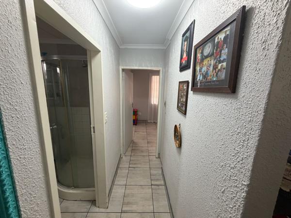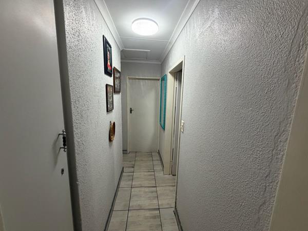 The kitchen is functional and inviting, with the added convenience of a separate laundry room to make daily chores easier. Outside, you will find covered carports for secure parking and a lovely lapa at the back, perfect for entertaining friends and family or enjoying weekend braais.