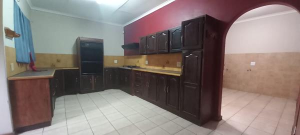 The large entertainment area leading to a an outside braai and nice splash pool.