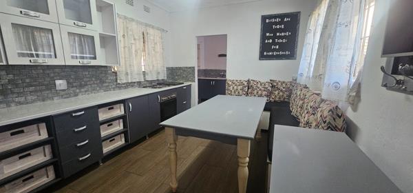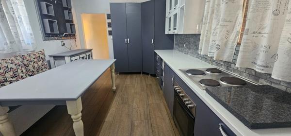 Three-bedroom home with flatlet. Family home with spacious living areas and a melamine kitchen with undercounter oven and hob.