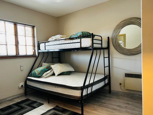 This unit boasts a 2-bedroom, 1-bathroom and carport. Open plan living with patio that includes a built-in braai and fitted bar area- perfect for entertaining friends and family.